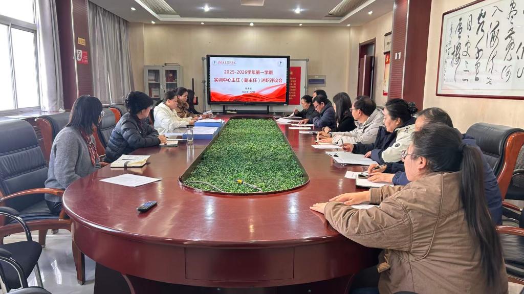 为全面总结本学期实训中心工作情况,科学谋划2026年工作,进一步服务学校“新双高”建设与“五金建设”任务,1月7日下午,我校在行政楼四楼会议室召开2025-2026学年第一学期实训中心(副)主任述职评议会。教务处、组织人事处、科学研究处、教学质量监控与评估处组成考核工作组开展综合考评。会议由教务处处长李晓乾主持。