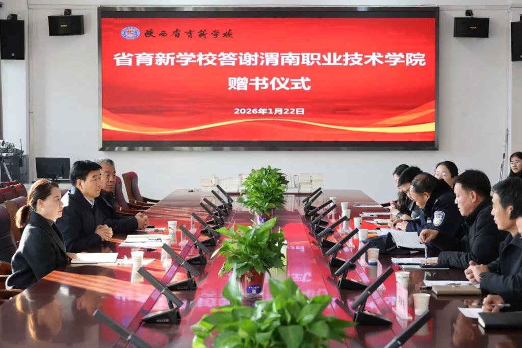 此次图书捐赠仪式在温馨融洽的氛围中圆满落幕。图书搭建起两校交流合作的坚实桥梁,既为陕西省育新学校带来了实实在在的资源支持,彰显了渭南职业技术学院的社会责任与教育情怀,更让特殊青少年群体感受到了来自社会的关爱与温暖。未来,两校将以爱心为纽带,深化合作、携手同行,共同为专门教育事业发展注入新动能,让每一个孩子都能在关爱与陪伴中茁壮成长,绽放人生光彩。(撰稿:教务处 杨军亭 审核:李晓乾)